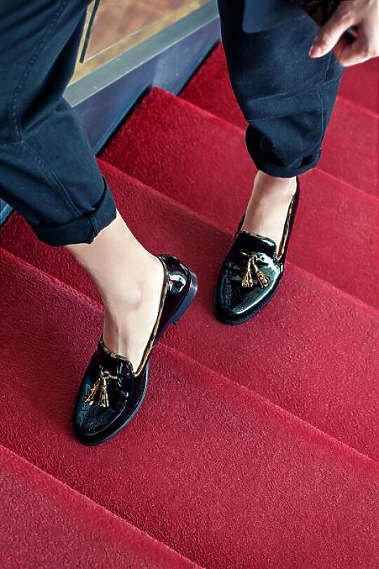 Slip-Ons are handcrafted by individual order. Upper material is made by patent leather, suede. Insole and lining materials - leather. Your new shoes will be handcrafted especially for you and delivered for free to your home or office in 1-2 weeks. Included option for free return and remake if the shoes do not fit.